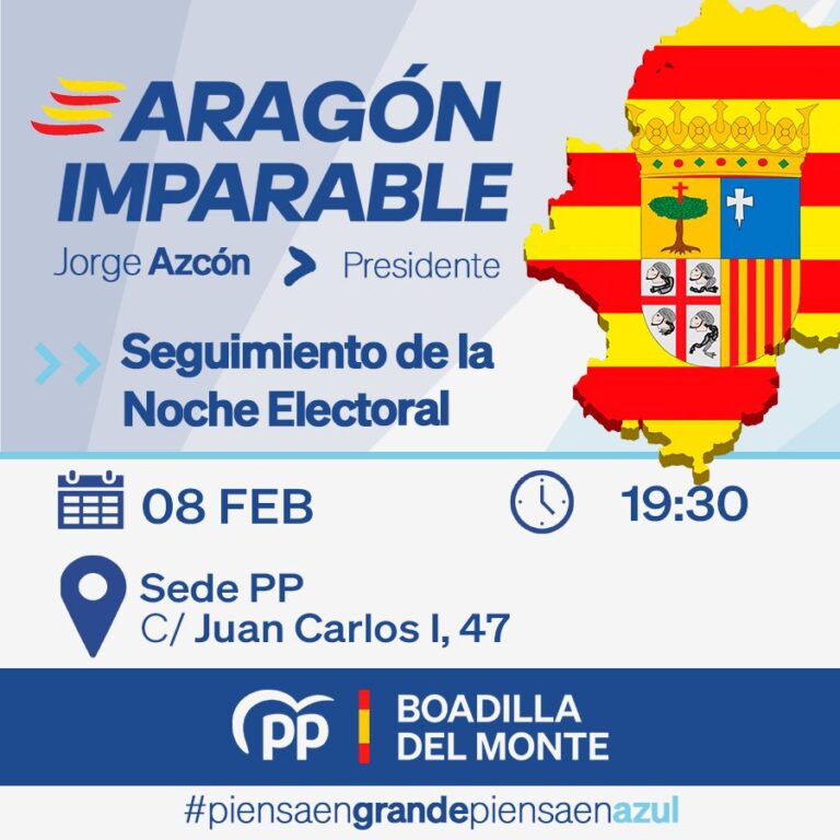El próximo domingo 8 de febrero, a partir de las 19:30 h, os esperamos en nuestra sede de la Calle Juan Carlos I, para seguir juntos la noche electoral de las elecciones en Aragón.