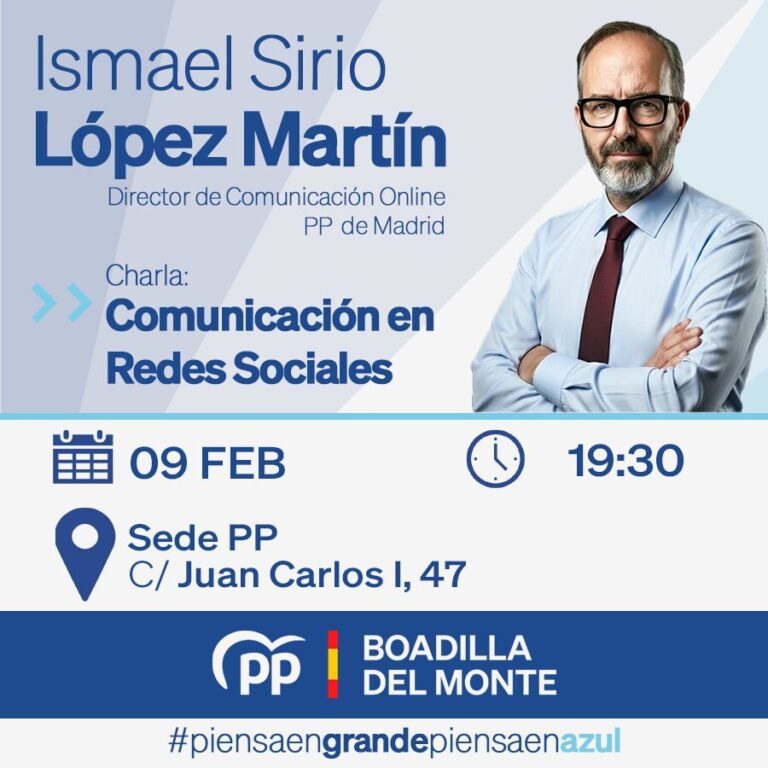 El próximo lunes 9 de febrero, a las 19:30 h, tendremos la oportunidad de contar en nuestra sede de la calle Juan Carlos I, 47, con Ismael Sirio López Martín, Director de Comunicación Online del Partido Popular de Madrid, quien compartirá su experiencia y reflexiones sobre la comunicación política en el entorno digital.