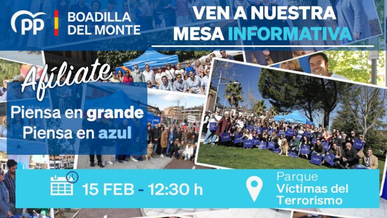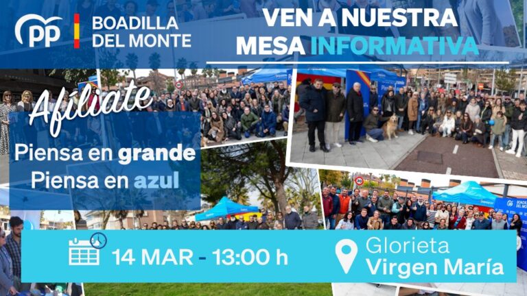 Acércate a nuestra mesa informativa, afíliate, únete a nuestro equipo y juntos conseguiremos que Boadilla siga siendo el lugar donde todos quieren vivir.